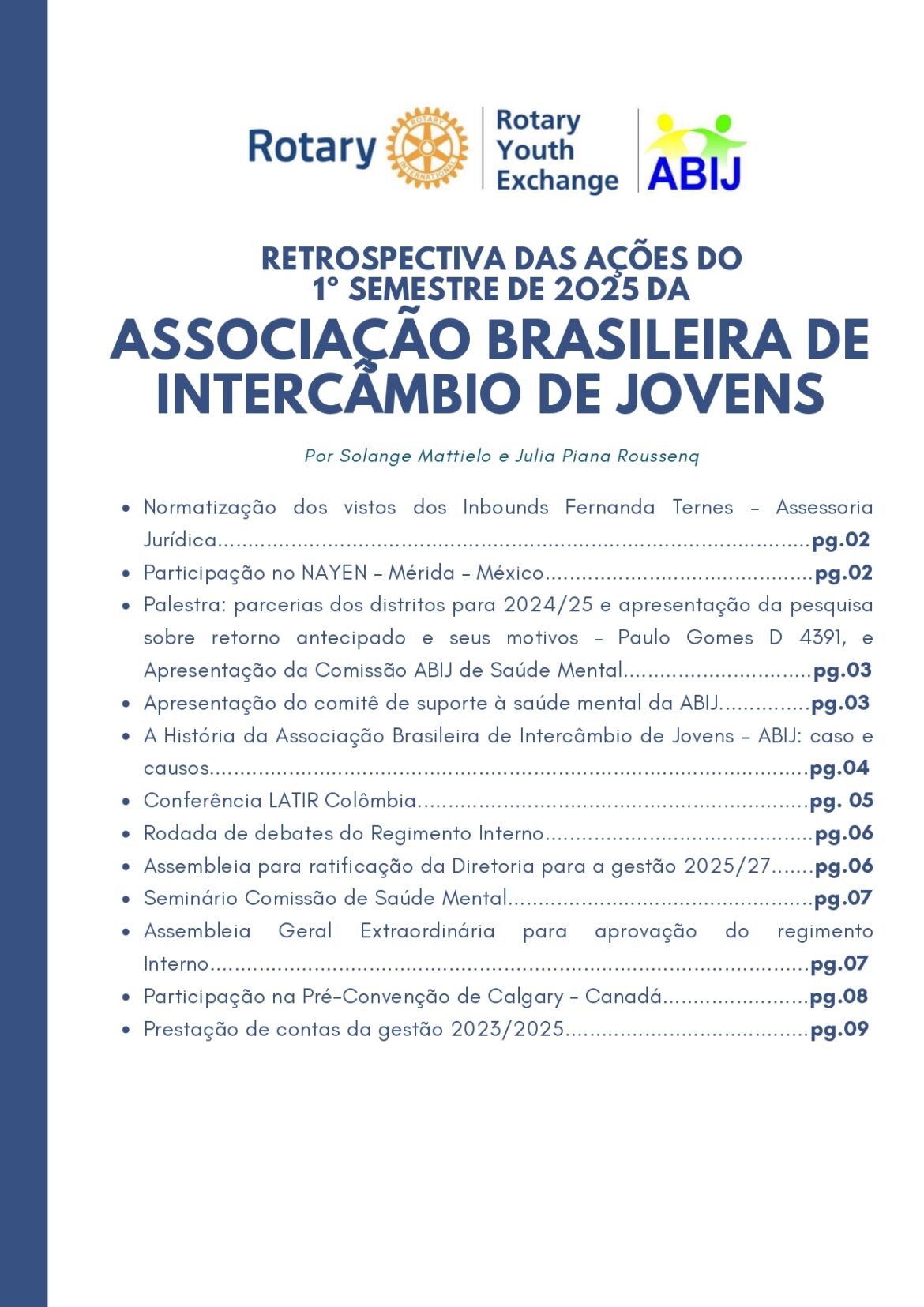A saúde mental é um pilar essencial para o sucesso e bem-estar dos jovens envolvidos no Programa de Intercâmbio da ABIJ. Pensando nisso, foi criada a Comissão Saúde Mental, que tem como missão orientar e dar suporte aos Distritos no cuidado com a saúde emocional dos participantes — desde os jovens intercambistas até suas famílias e equipes envolvidas.